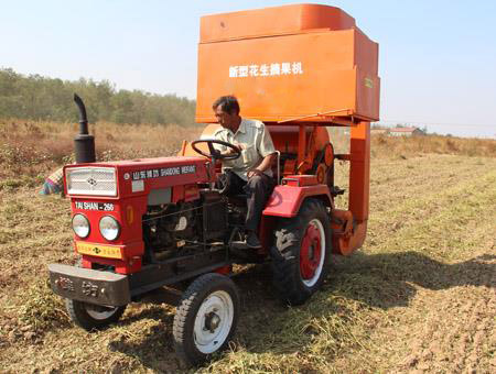 花生摘果機(jī)包括簡(jiǎn)單的手搖花生摘果機(jī)、與發(fā)動(dòng)機(jī)配套的花生摘果機(jī)、拖拉機(jī)配套的摘果機(jī)和電動(dòng)機(jī)配套的摘果機(jī)。花生摘果機(jī)的結(jié)構(gòu)比較簡(jiǎn)單.其主要工作部件一般由彈齒滾筒、滾筒篩、固定彈齒、風(fēng)扇等組成。無(wú)論配套什么動(dòng)力,其工作原理都是相同的,均采用蓖梳式摘果原理。